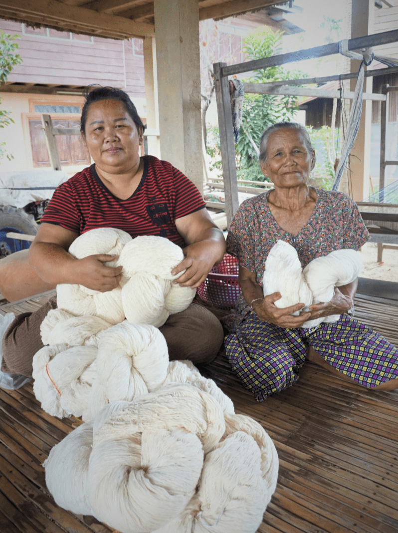 The Phou Tai we work with live in Savannakhet Province in southern Laos, in communities famed for their matmee (more widely known as ikat, a resist-dye dyeing technique of yarns before weaving). Like the Tai Lue in northern Laos, the Phou Tai have a strong tradition of cotton production: growing, ginning, and spinning their own thread.